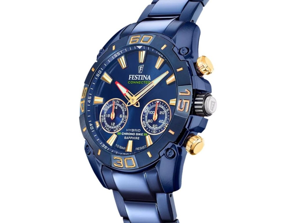 A Festina Connected egy óra, amelyet az okostelefonjával párosíthat a névadó alkalmazás segítségével, amely Android és iOS rendszerre érhető el. Különlegessége abban rejlik, hogy első ránézésre nem úgy néz ki, mint egy átlagos okosóra, de 17 érdekes és hasznos funkciót tud nyújtani, amelyeket az alábbiakban részletezünk. Az óra akkumulátora több mint két év élettartamú, és minden modell 100 méterig vízálló. Ráadásul az óra kinézete könnyen megváltoztatható a csomagban található álcázó mintás gumipántnak köszönhetően.