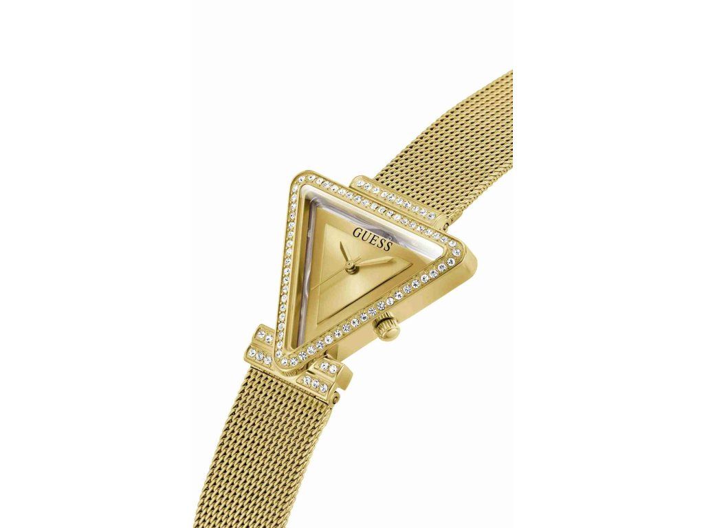 Eredeti darabot keres, amellyel kiegészítheti a kiegészítők gyűjteményét? A GW0508L2 női karóra nagyon népszerű eredeti megjelenése miatt, amely eltér a klasszikus kerek karórától. A háromszög alakú tok kiváló minőségű rozsdamentes acélból készült, akárcsak a szíj. A lünetta pontosan beállított üveg strasszkövekkel van díszítve, amelyek még inkább kiemelik ezt a modellt a női csuklón. A fényes, minimalista kijelző nem tartalmaz számjegyeket, megtartva a visszafogott stílust.