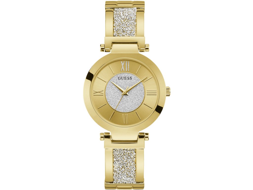 A Guess W1288L2 női karóra szó szerint elkápráztatja Önt fényes kivitelével. Minden olyan hölgy számára alkalmas, aki a sportos-elegáns stílust kedveli. Ez az óra minden olyan gyengéd lény számára alkalmas, aki szereti az esztétikát a legmagasabb minőségű termékkel kombinálva. Az aranyszínű design a kristályokkal együtt még mindig időtálló, ezért nem szabad kihagynia egyetlen nőnek sem, aki szereti az eredetiséget és a stílust. Fogadjon a Guess márkára, amely büszke a minőségére, és ragyogjon együtt óráinkkal! Az órát a gyártó eredeti csomagolásában, elegáns dobozban szállítjuk.